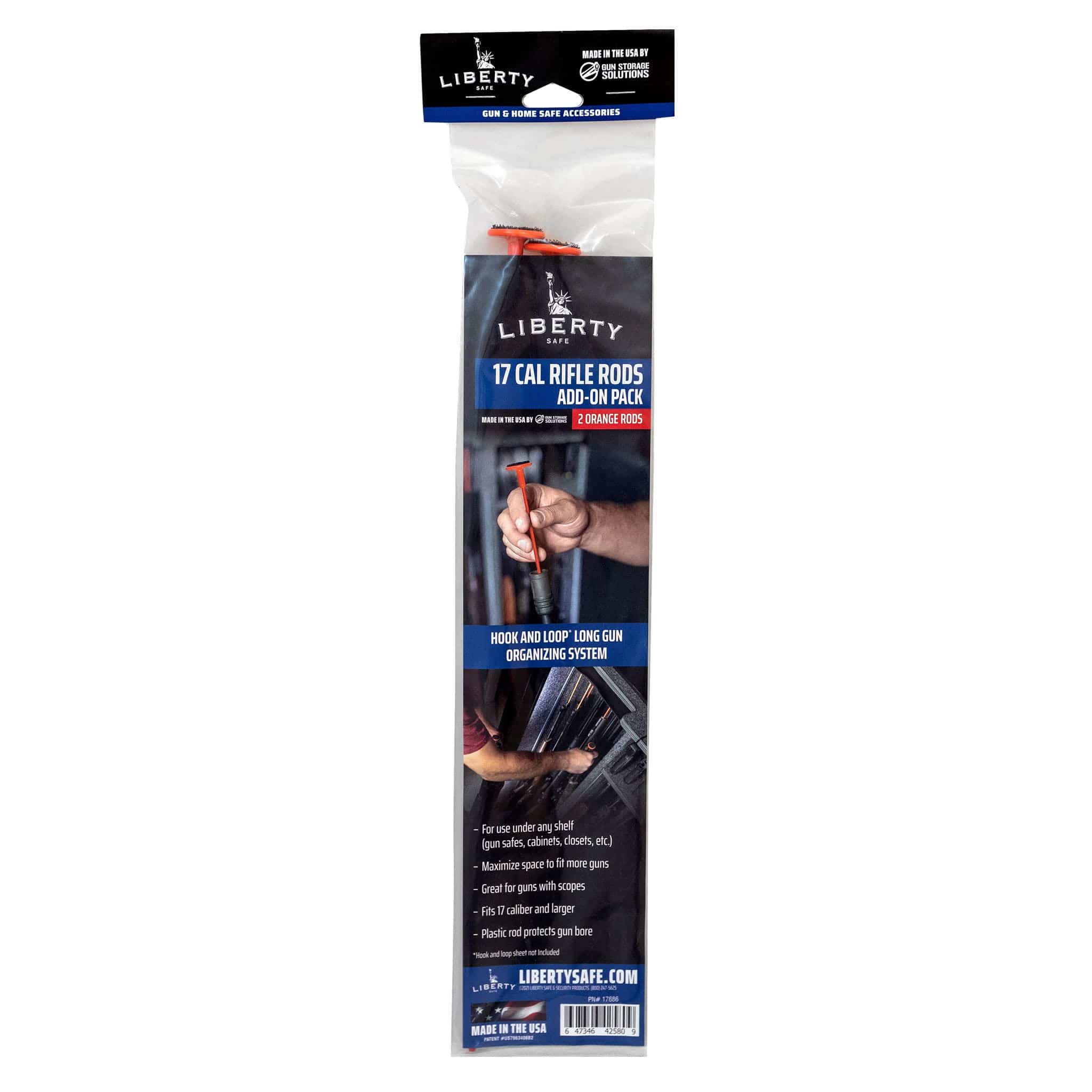 With Rifle Rods you can easily customize and maximize the storage of all your long guns, and fit up to 50% more in your safe or storage space. These innovative, 16” coated rods insert into the bore of your rifles or shotguns and then extend to the “roof” of whatever space you’re using, where velcro tabs on the rod ends lock into the corresponding velcro material under the shelf or ceiling and secure the gun from moving. Great for short-barreled rifles and carbines, youth-sized shotguns and rifles, and any long gun that doesn’t fit well into traditional rifle racks (including scoped rifles, which are always a pain).